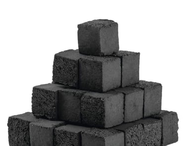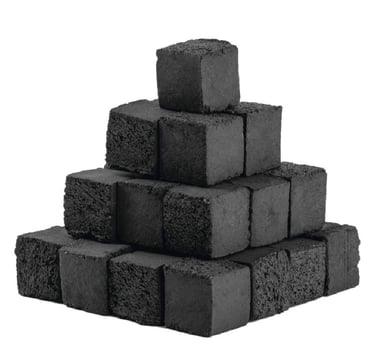 1. Briquettes Charcoal Cube: A compressed coconut block of coal dust or other combustible biomass material used for fuel and kindling to start a fire shaped cube.