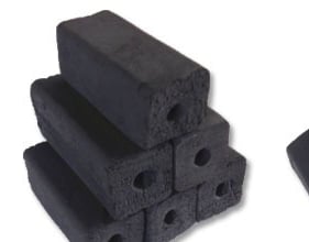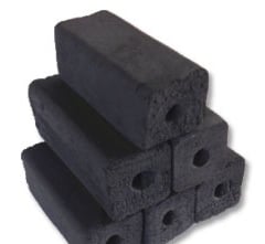 2. Briquettes Charcoal Rectangle: A compressed coconut block of coal dust or other combustible biomass material used for fuel and kindling to start a fire shaped rectangle.